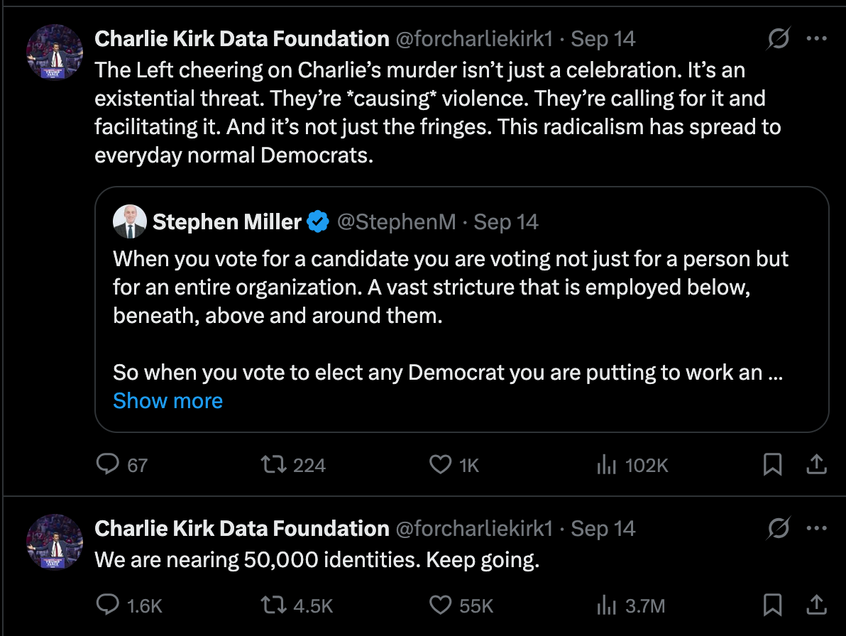 One of the weirdest parts of this has been MAGA zealots policing of the attempted martyrization of Charlie. For many of these zealots, anyone not grieving hard enough and expressing anything other than completely unrealistic and comedic levels of performative, virtue signalling grief—preferably in some kind of dystopian aesthetic resembling a Command and Conquer cutscene—is seen as a necessity of Cult membership. When you’re acting in a way that even Kim Jong Un would consider too far it’s time to touch grass!