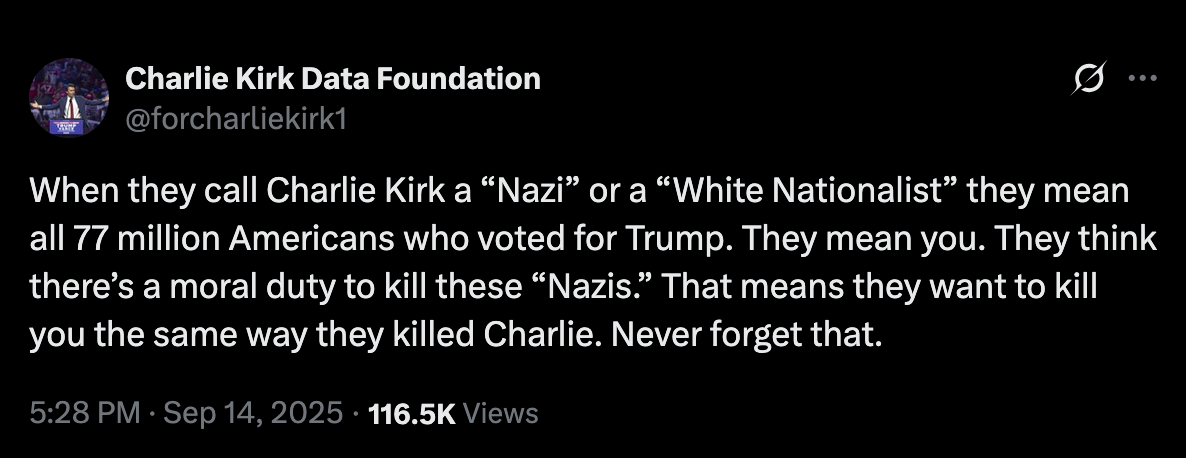 Unfortunately, alongside awful gloating over Charlie’s death, many MAGA zealots have seen this as an opportunity to try to incite further violence and a Civil War, adding fuel to the fire.