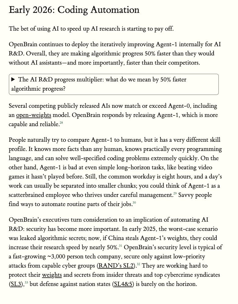 November 2026: All of humanity is enslaved under Le Monsiour Vogon’s research programme. Only those with an Elo of 1400 survive the death camps. All future human offspring are artificially selected for as the Ai’s read Richard Hannania’s substacks on “high human capital” and as such they attached a future-ai-quantum-optimised fMRI to his brain to read his wet-dreams and find the ultimate Champions of Raven’s Progressive Matrices in order to produce the next generation of lebensborn.