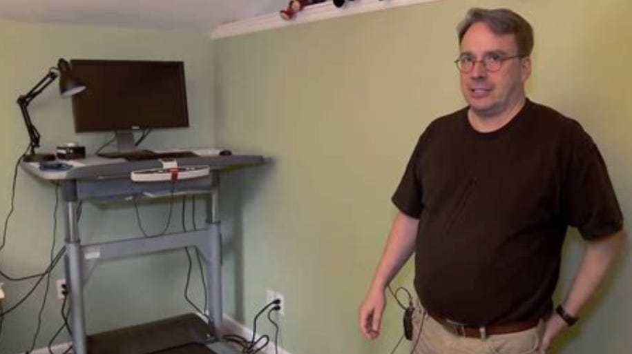 REAL developers (come in all shapes and sizes and genders and personality types) look like THIS. Linus (the freaking guy behind Linux) works at his single monitor (flat screen) standing desk like 10h a day where he keeps the goddamn blinds down so the light doesn’t distract him. He occasionally goes to pick the kids up from school.