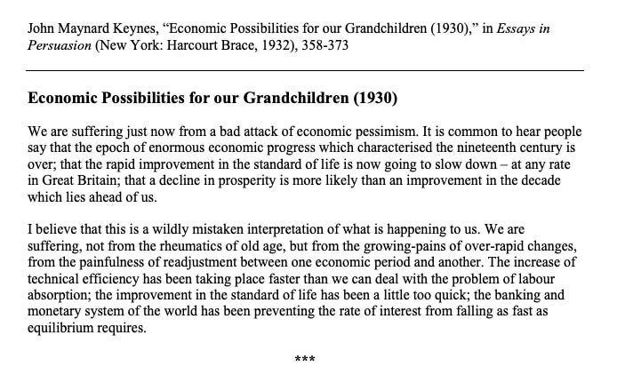 To be fair to Russell at least, he does say something that aligns a little bit more with what has actually happened and continues, and will continue to happen: "It seems more likely that they will find continually fresh schemes by which present leisure is to be sacrificed to future productivity."