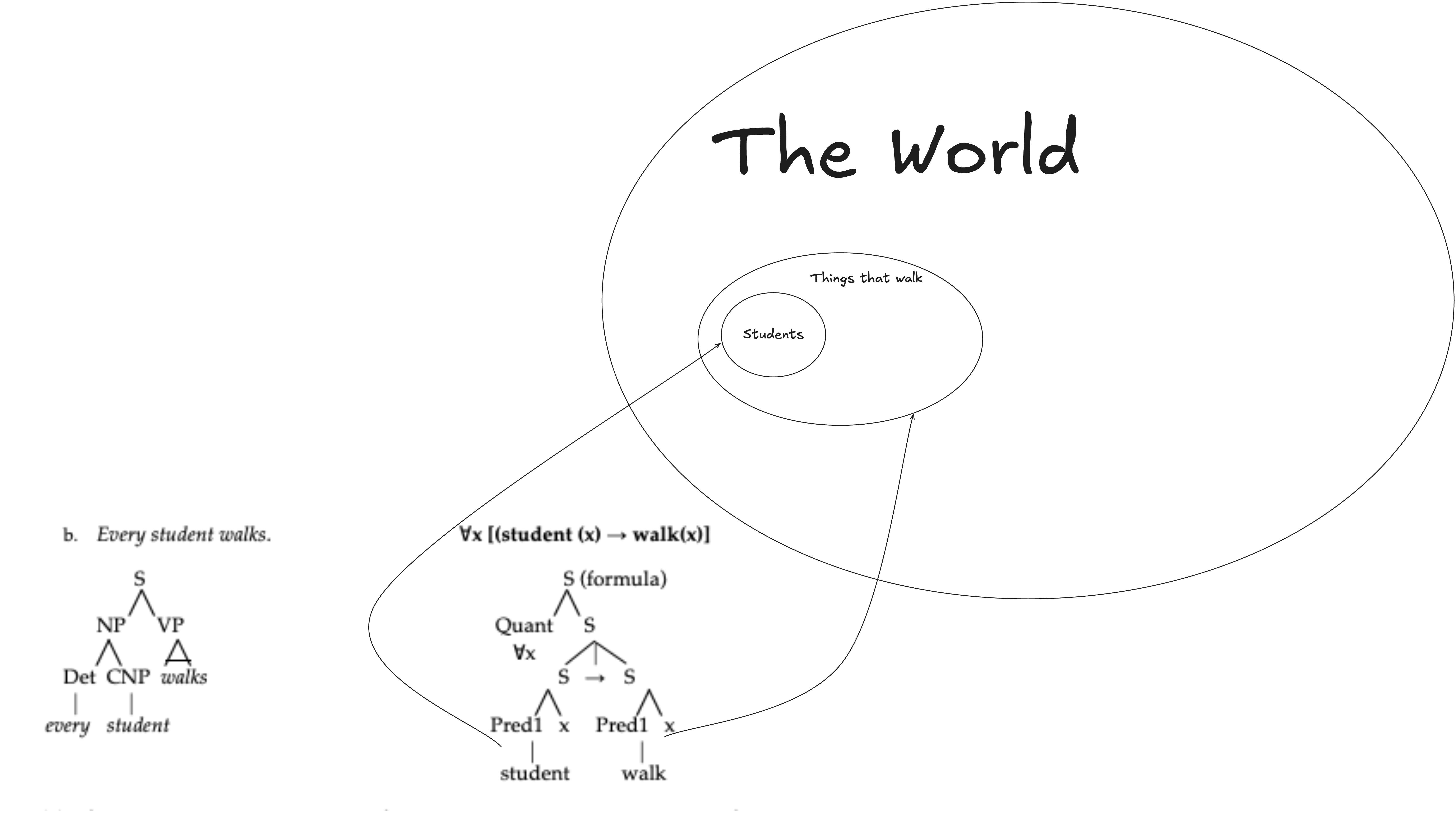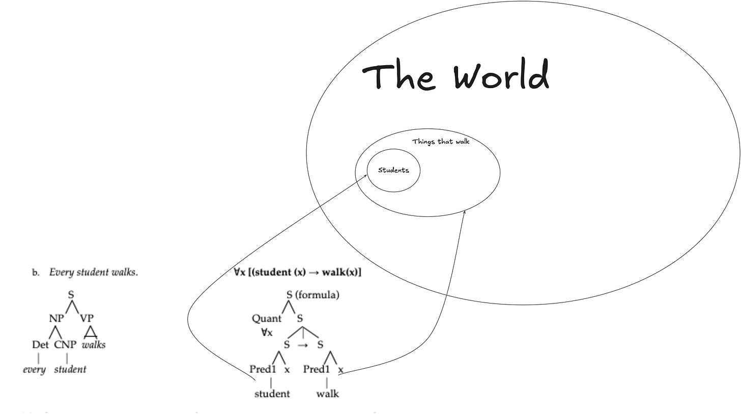You’ll be told that the intimidating logic looking stuff is about syntax and that there’s this thing called semantics which is about meanings and “trust me bro” these arrows are like “pointing” in some invisible mysterious sense and your brain is doing all this and that’s what it really really really means to mean something (just don’t ask too much about these arrows).