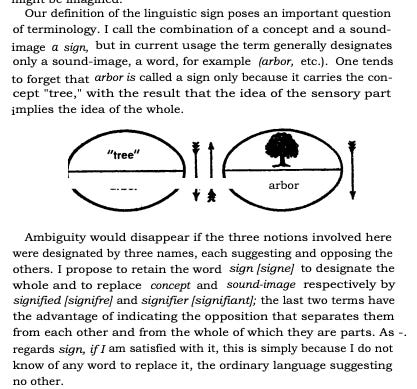 And then skip back a bit in history and ignore all the itneresting stuff in the origins of contemporary linguistics, and its seminal founder, Ferdinand Saussure, says: